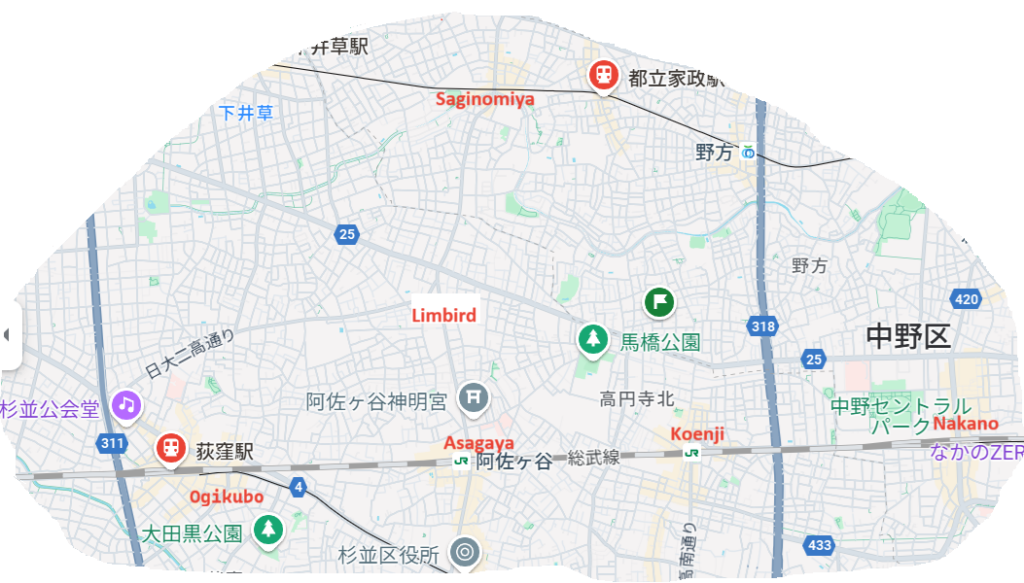 JR:荻窪、阿佐ヶ谷、高円寺、中野